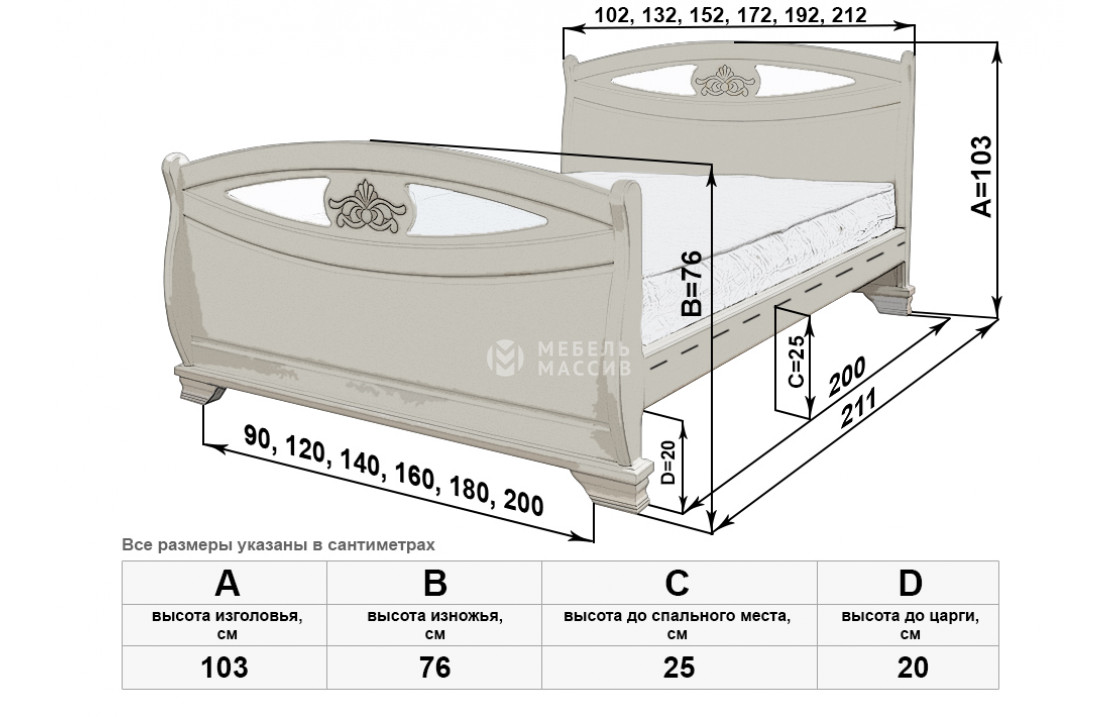 Кровать Эльза имеет две идентичные спинки, отличающиеся аккуратной изогнутостью, декоративными углублениями и цветочными узорами. Изделие, которое можно купить по специальной цене в нашем интернет-магазине, оснащено устойчивыми ножками, защищающими напольное покрытие от повреждений. Осуществляется доставка на дом по Набережным Челнам и Республике Татарстан.| Размер | Цена | |