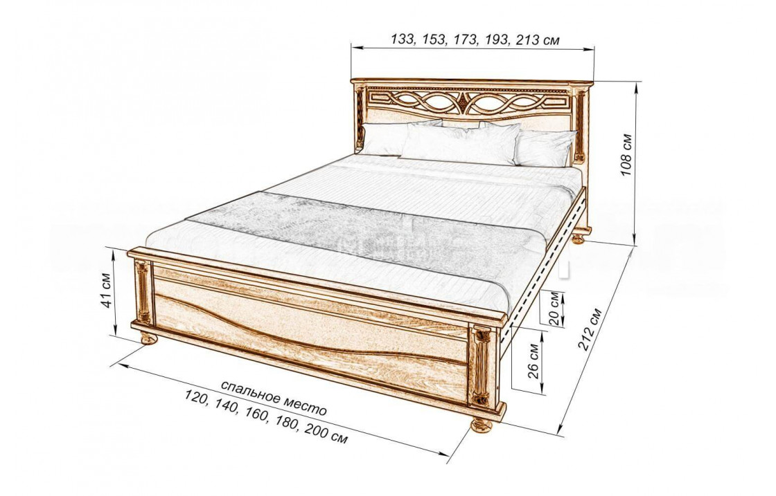 Оригинальная кровать Мелиса из берёзы отличается узорчатым изголовьем и низким изножьем. Модель, которую можно купить по выгодной цене в нашем интернет-магазине, оснащена аккуратными ножками для защиты напольного покрытия, а также обработана специальным лаком для увеличения срока службы изделия. Осуществляется доставка на дом по Набережным Челнам и Республике Татарстан.| Размер | Цена | |