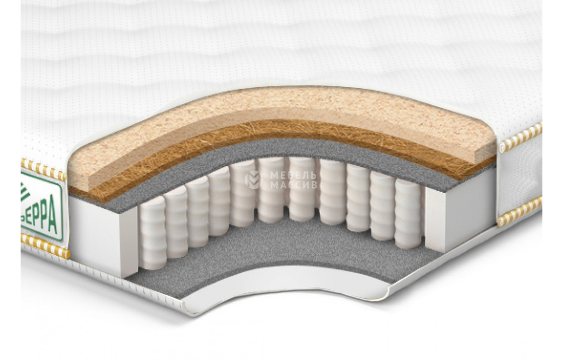 - Кокос 1 см ? Кокос - переплетенные волокна кокосового ореха, растительного происхождения. Исключительные свойства кокоса в прочности, упругости и гигиеничности. Материал придает жесткости матрасу. Обладает отличной вентилируемостью, устойчив к любой влажности и перепадам температуры, гипоаллергенный и долговечный.