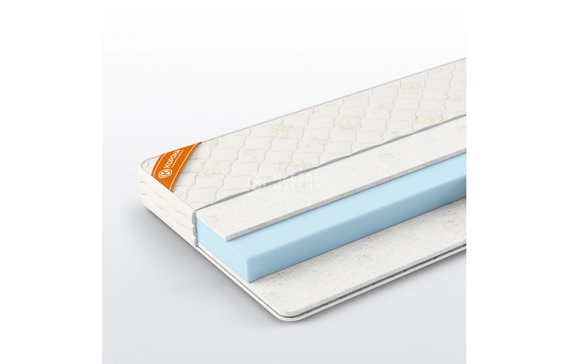 беспружинный ортопедический матрас для детей возрастом старше 3-х лет. струттофайбер, используемый в качестве наполнителя — антибактериальный материал, который состоит из вертикальных волокон, которые работают по принципу маленьких пружин. он принимает форму тела и распределяет нагрузку по поверхности, имеет умеренную жесткость. именно такая поверхность для сна рекомендуется для малышей в период формирования изгибов позвоночника.