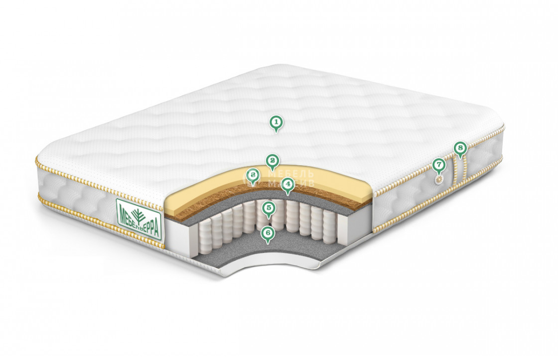 - Кокос 1 см ? Кокос - переплетенные волокна кокосового ореха, растительного происхождения. Исключительные свойства кокоса в прочности, упругости и гигиеничности. Материал придает жесткости матрасу. Обладает отличной вентилируемостью, устойчив к любой влажности и перепадам температуры, гипоаллергенный и долговечный.