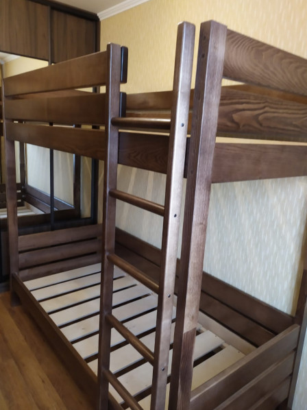 Кровать двухъярусная из натурального дерева Классика 2 , массив сосны , цвет венге 2.