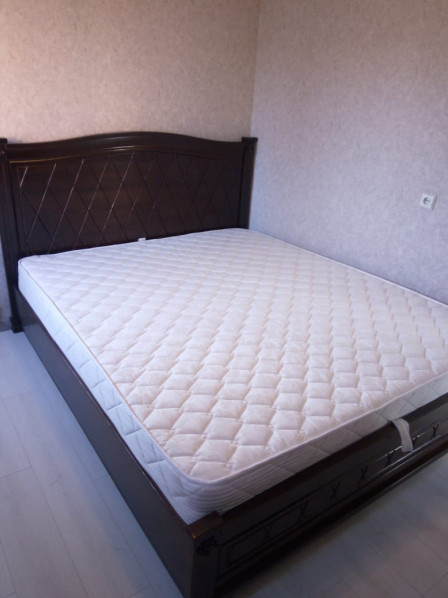 Кровать с мягким изголовьем из натурального дерева Верона, массив сосны, цвет вишня 3. Изделие укомплектовано матрасом с ортопедическим эффектом.