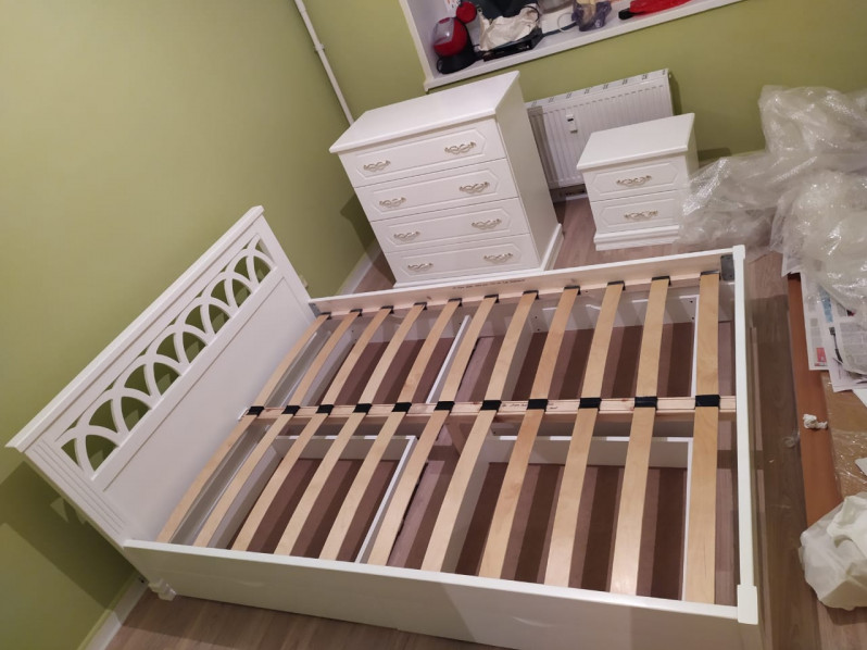 Спальный гарнитур из натурального дерева Лира Lux, массив сосны, цвет белая эмаль.