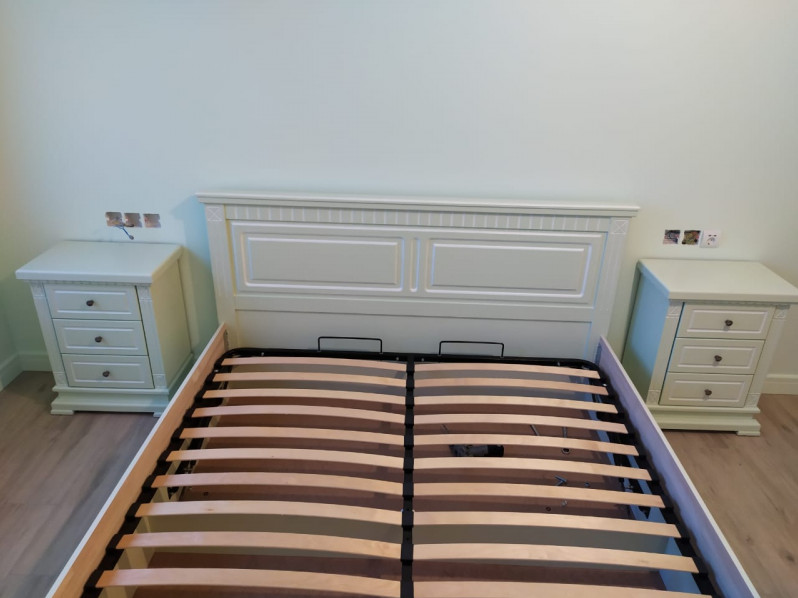 Кровать двуспальная из натурального дерева Блэр с подъёмным механизмом, массив сосны, цвет белая эмаль.